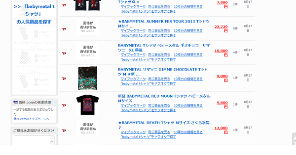 BABYMETALのサマソニ限定Tシャツなどが投機目的の転売で、ヤフオク上に大量出品されている。サマソニ東京では購入枚数制限が無かったため、一人で大量に仕入れる場面が見られた。朝早くから並んだファンが買えない不平等は改善すべきだ。偽物のTシャツも出品されているらしいのでご注意を。
