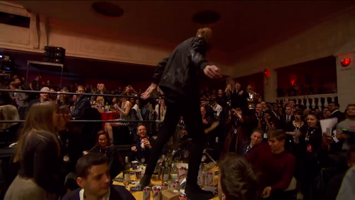 ヴォーカルのオリヴァー・サイクスは歌いながらcoldplayのディナーテーブルに飛び乗り暴走。テーブルを倒し、騒然となった。