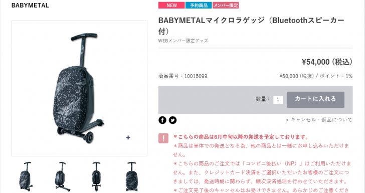 BABYMETALマイクロラゲッジ(Bluetoothスピーカー付)をアスマートにて THE ONE 限定販売いたします。