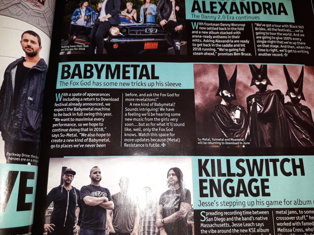 BABYMETAL in Metal Hammer’s 2018:The year ahead feature. pic.twitter.com/CVNAiGdTAK