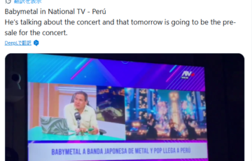 • 【海外】ペルーのテレビ局「ATV」のニュース番組で、BABYMETALのペルー・リマ公演が決定したことを報じられる 2026.04.24