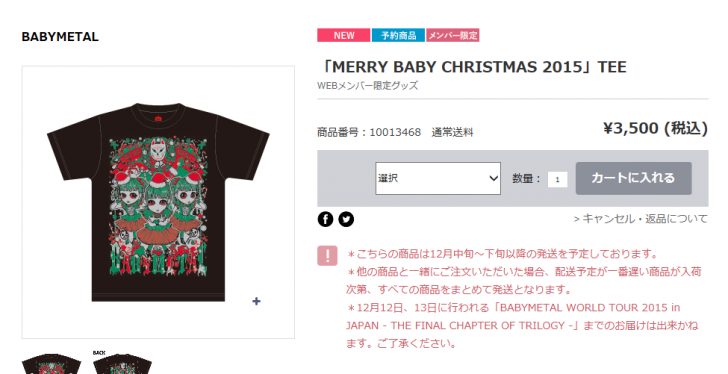 全サイズ復活中!! 「アスマート」BABYMETAL オフィシャルSHOPでお買い物。