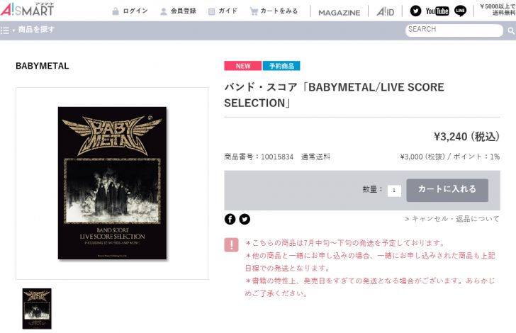 日本に留まらず海外でも快進撃を続ける『BABYMETAL』初のバンドスコアが7月9日に発売になります。巻頭にはライブ写真を掲載し、アルバム『METAL RESISTANCE』までの代表曲12曲を一般的なバンド編成で演奏できるように、ライブ音源等をもとに譜面化したこのバンドスコアはファンのマストアイテムになること間違いなしです。ぜひこのバンドスコアで『BABYMETAL』を体感してください!