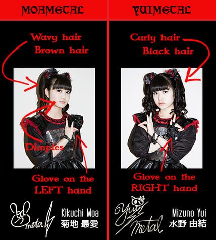 A. 右手グローブがYUIMETAL、左手グローブがMOAMETAL、という区別が一番簡単です。