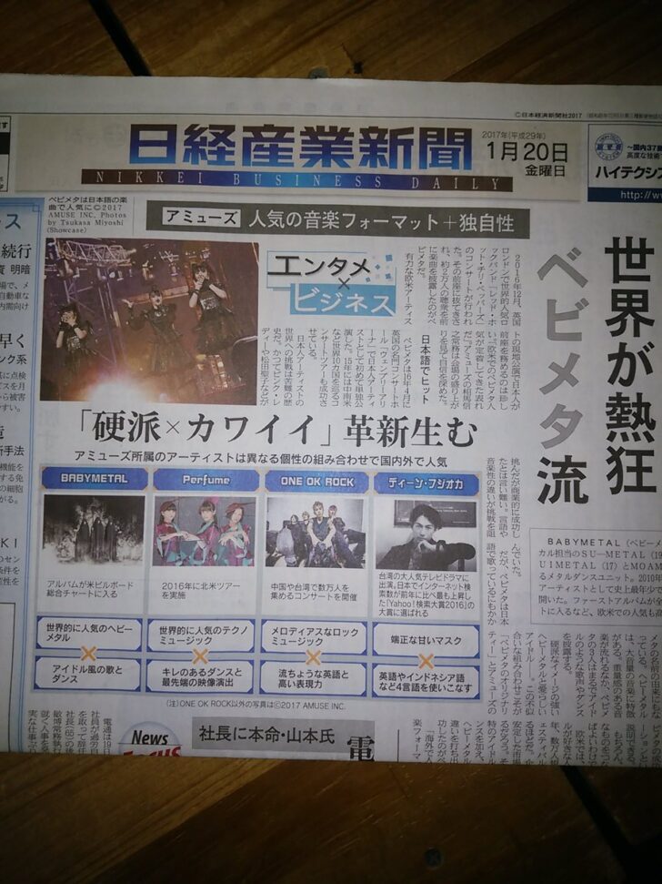 日経産業新聞の見出し 「世界が熱狂 ベビメタ流」