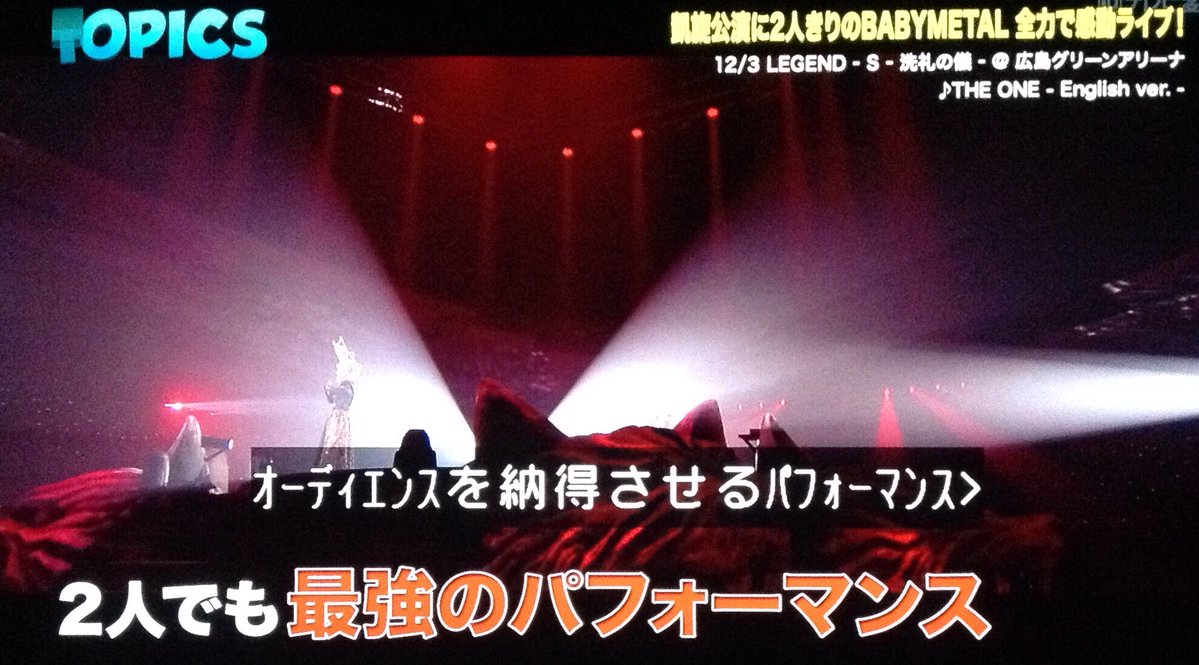 @広島グリーンアリーナ#BABYMETAL#legend-s#洗礼の儀#広島グリーンアリーナ#JCD#テレ東 pic.twitter.com/oCWia2recM— 2RU-METAL (@2ruMetal) 2017年12月17日