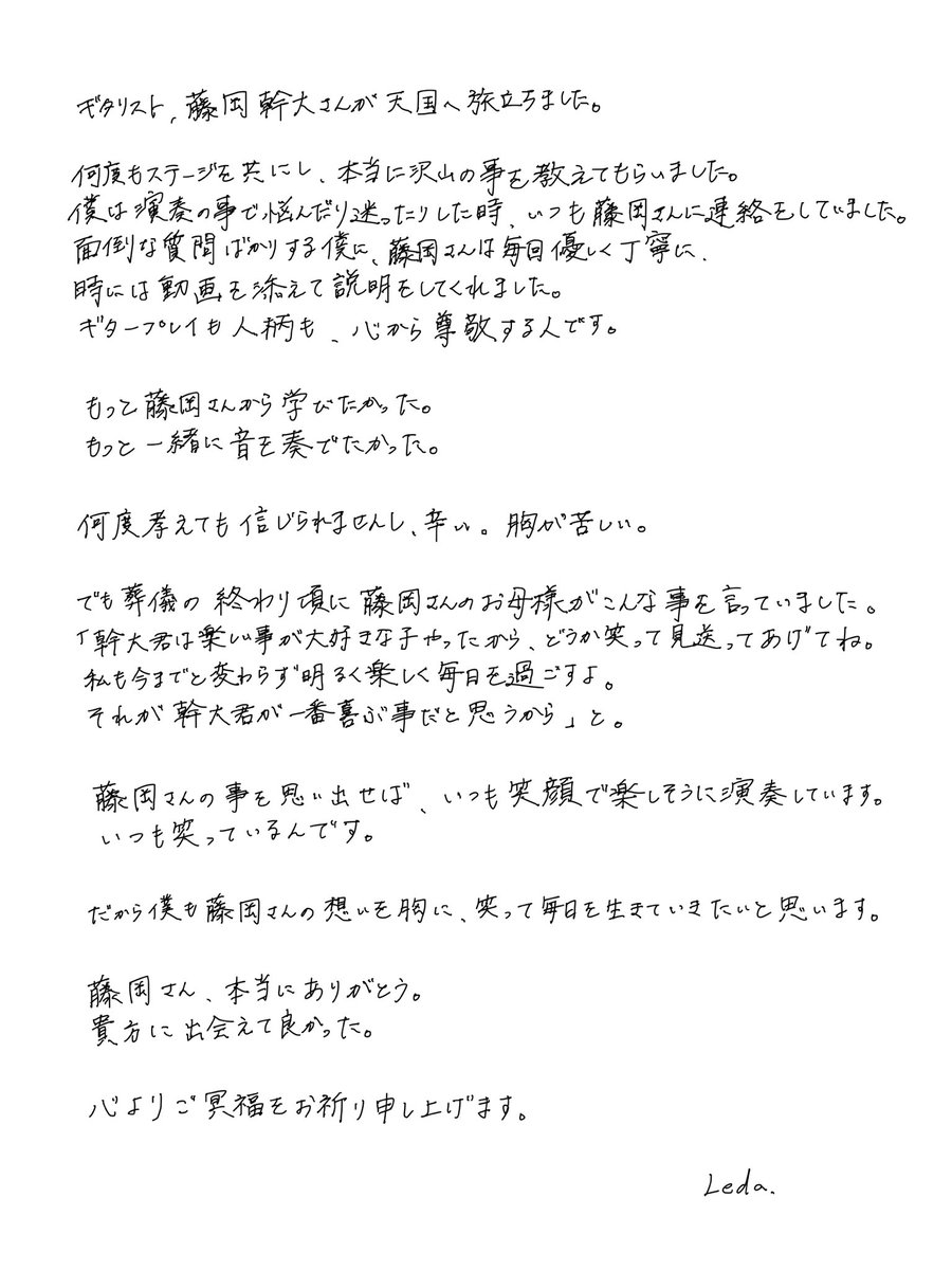 藤岡さんが望んでいること、残された家族やファンの皆さんに自分たちが出来ることを考えて行かなくてはならないと思っております。