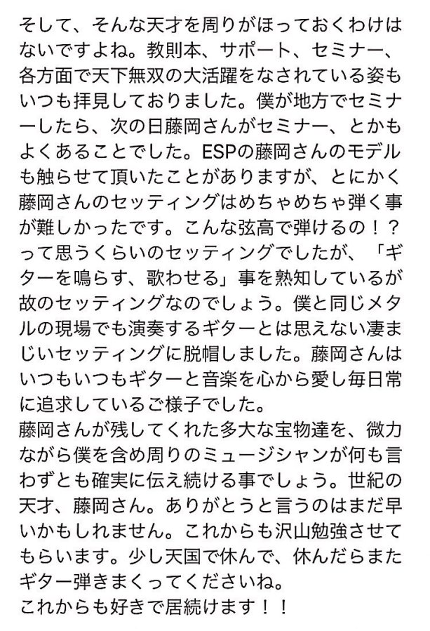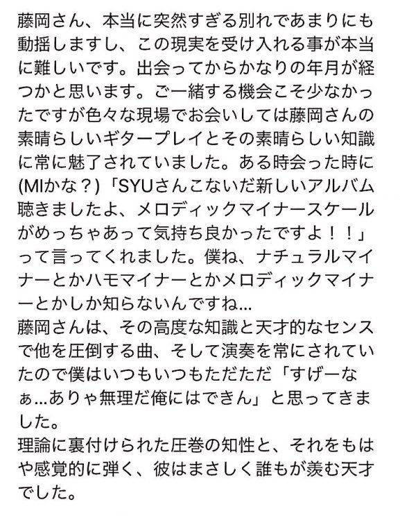 ガルネリウスのギターSYUの「藤岡さんへの気持ち」