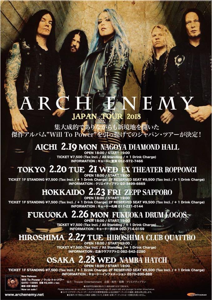 昨日2/19に名古屋公演を皮切りにジャパン・ツアーをスタートしたARCH ENEMYその模様が到着!https://t.co/GNPsvFfEDp pic.twitter.com/5Sb77Th5gR— Creativeman (@CMP_official) 2018年2月20日