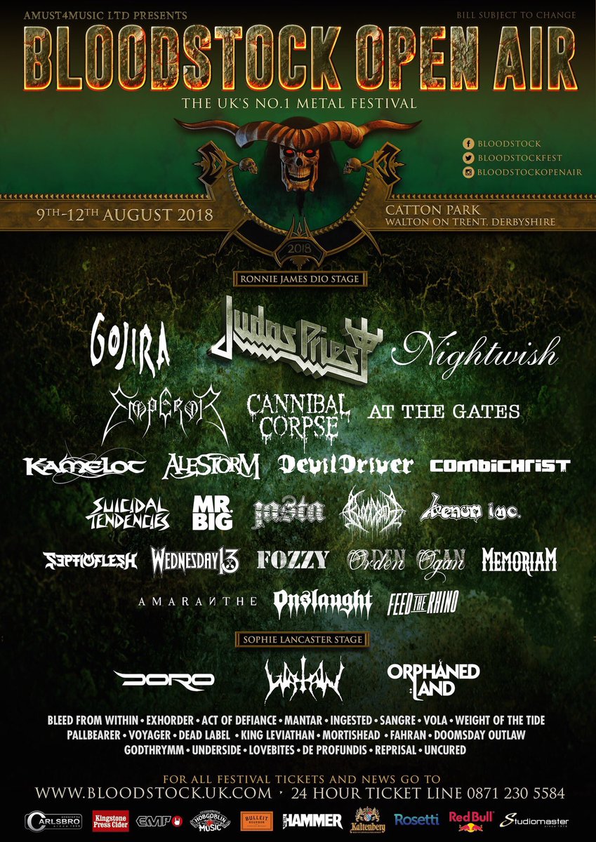 同日はヘッドライナーのJudas Priestを始め、Emperorなど大物が多数出演!https://t.co/ksy0aQCS7A pic.twitter.com/MHRMdQFu9a
