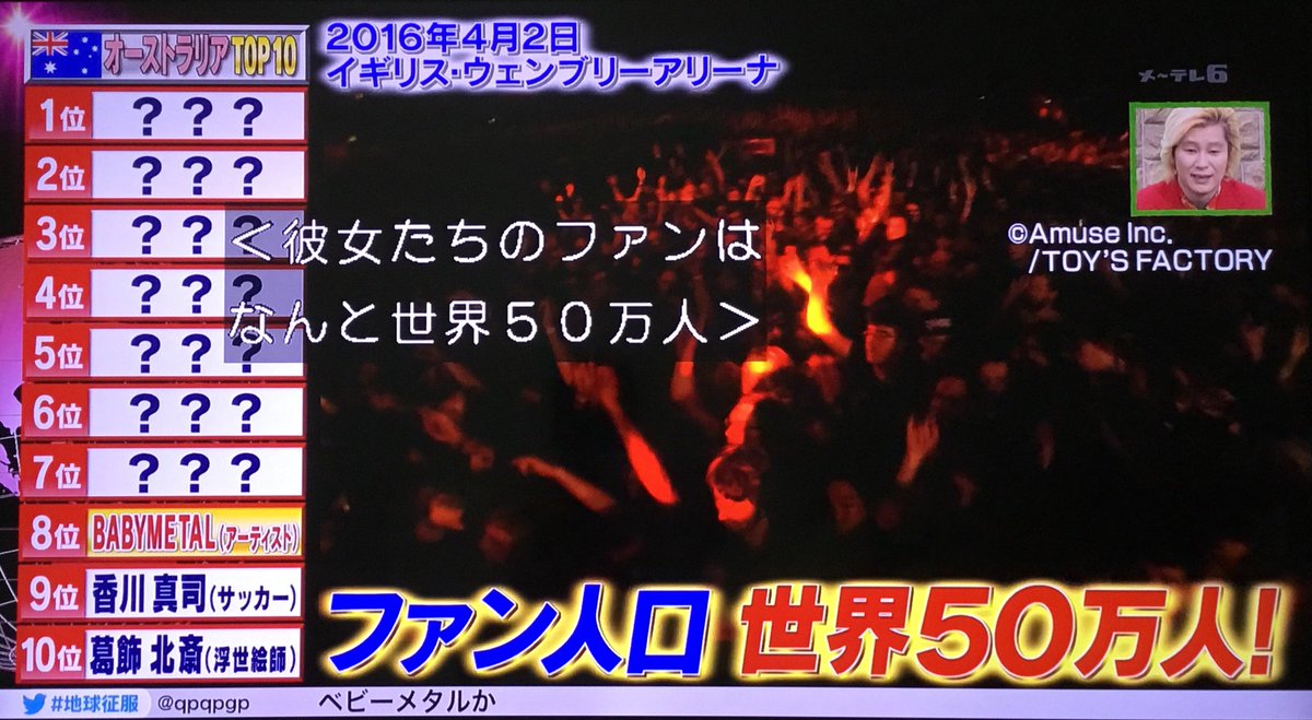 60秒でわかる #BABYMETALオーストラリアで日本人アーチスト最高位7位を獲得した件って地上波で紹介されるのはこれが初? pic.twitter.com/TRbG5MxLFy