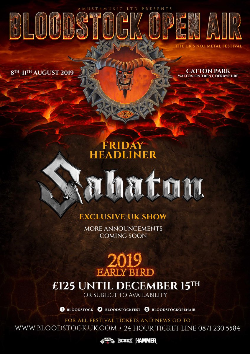 Sabaton to headline @BLOODSTOCKFEST 2019!