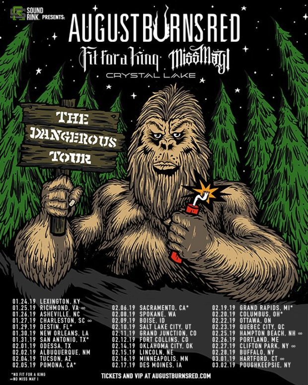 ペンシルベニア,ランカスター出身メタルコアバンドAugust Burns Redの来年のUSツアー「The Dangerous Tour」が発表され、Fit For A King, Miss May Iと共にCRYSTAL LAKEがサポートアクトとして出演することが決定しました。