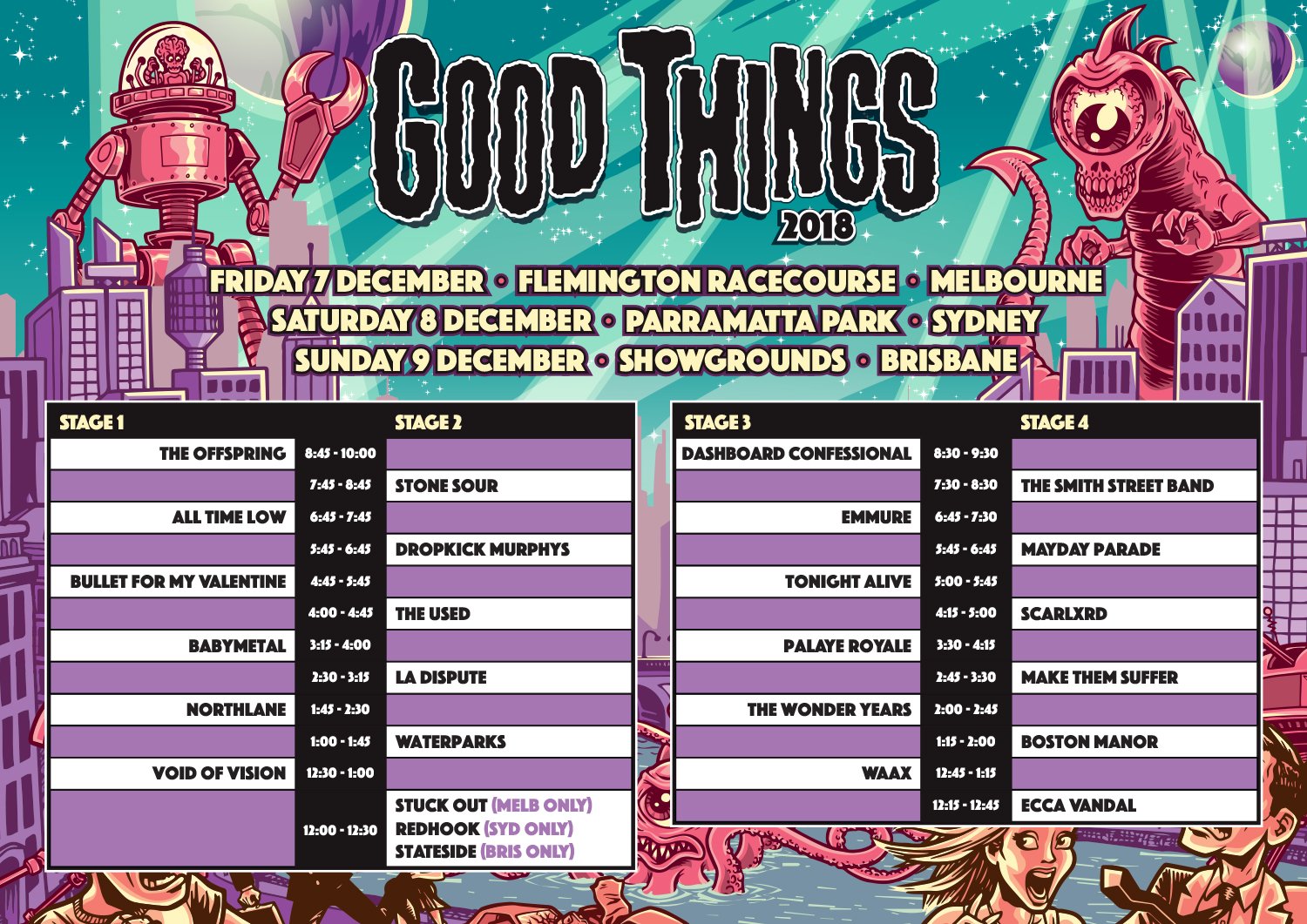 Your #GoodThingsFest Playing Times have arrived!https://t.co/sG9D5bl86j pic.twitter.com/4h8waWxQjI— Good Things Festival (@GoodThingsFest) 2018年11月15日