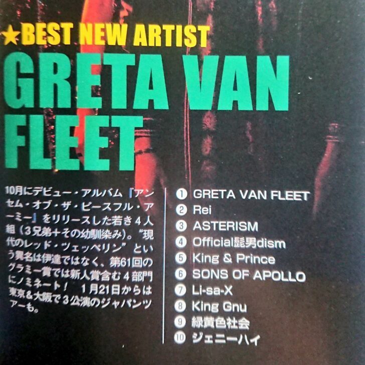 1位GRETA VAN FLEETはWORLD WIDEでの活躍を考えると納得。