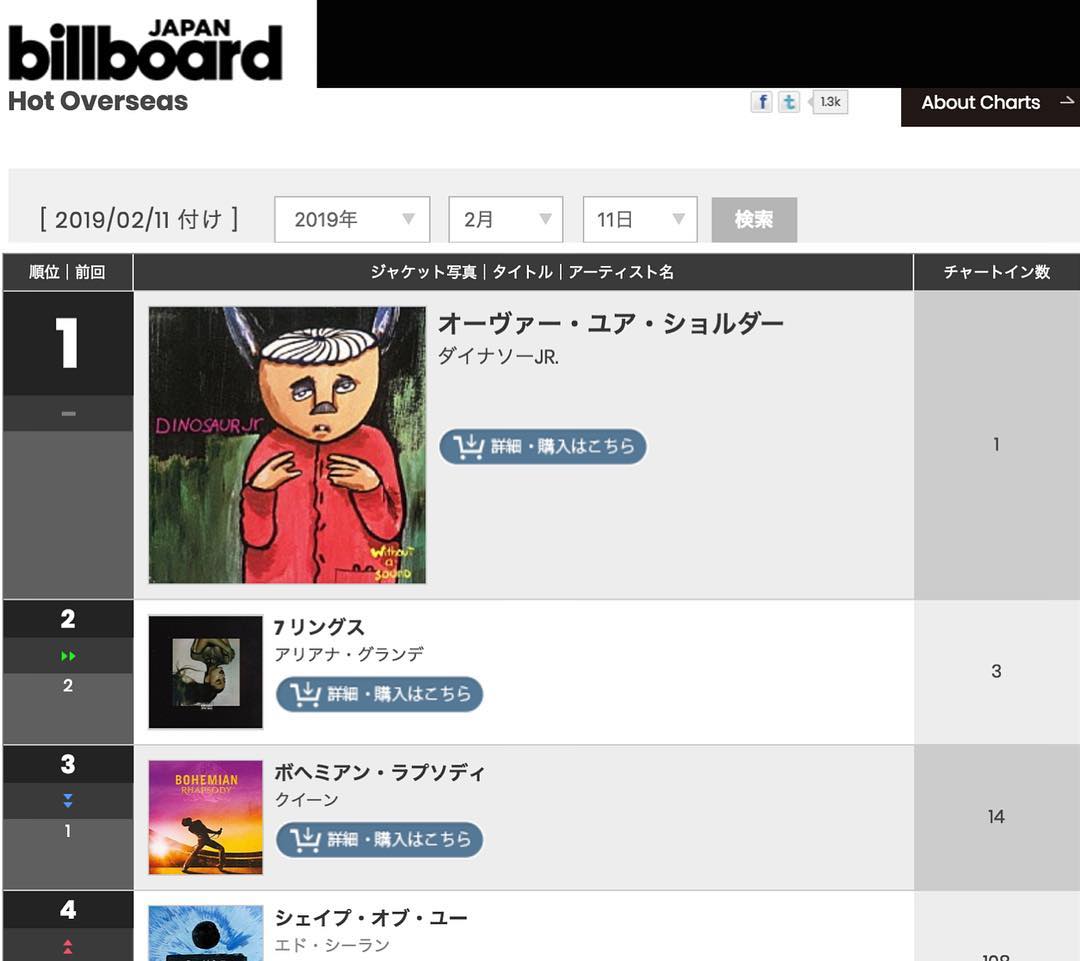 日本でDinosaur Jr. のOver Your Shoulderがビルボードチャートに突然ランクインした件が話題になったので調べたところ、2/6OAのTOKIOカケルで元ガチンコメンバーのボクサーが取り上げられて、懐かしさから聴かれたみたいです。