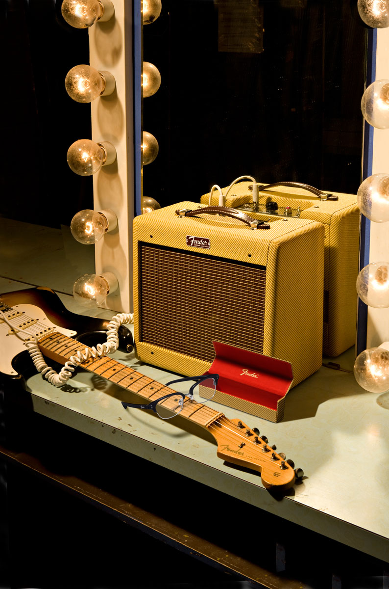 Fender(フェンダー)のアンプロゴを12%スケールにしたロゴプレートをあしらったメガネや、Fender(フェンダー)社の伝統的なイエローツイードを使用した専用メガネケース、Fender(フェンダー)ストラップを100%スケールで再現したメガネ拭きなど、ブランドの世界観を忠実に再現したアイテムを、Fender(フェンダー)を愛用するミュージシャンたちが着用したことで人気に火が付き話題となりました。