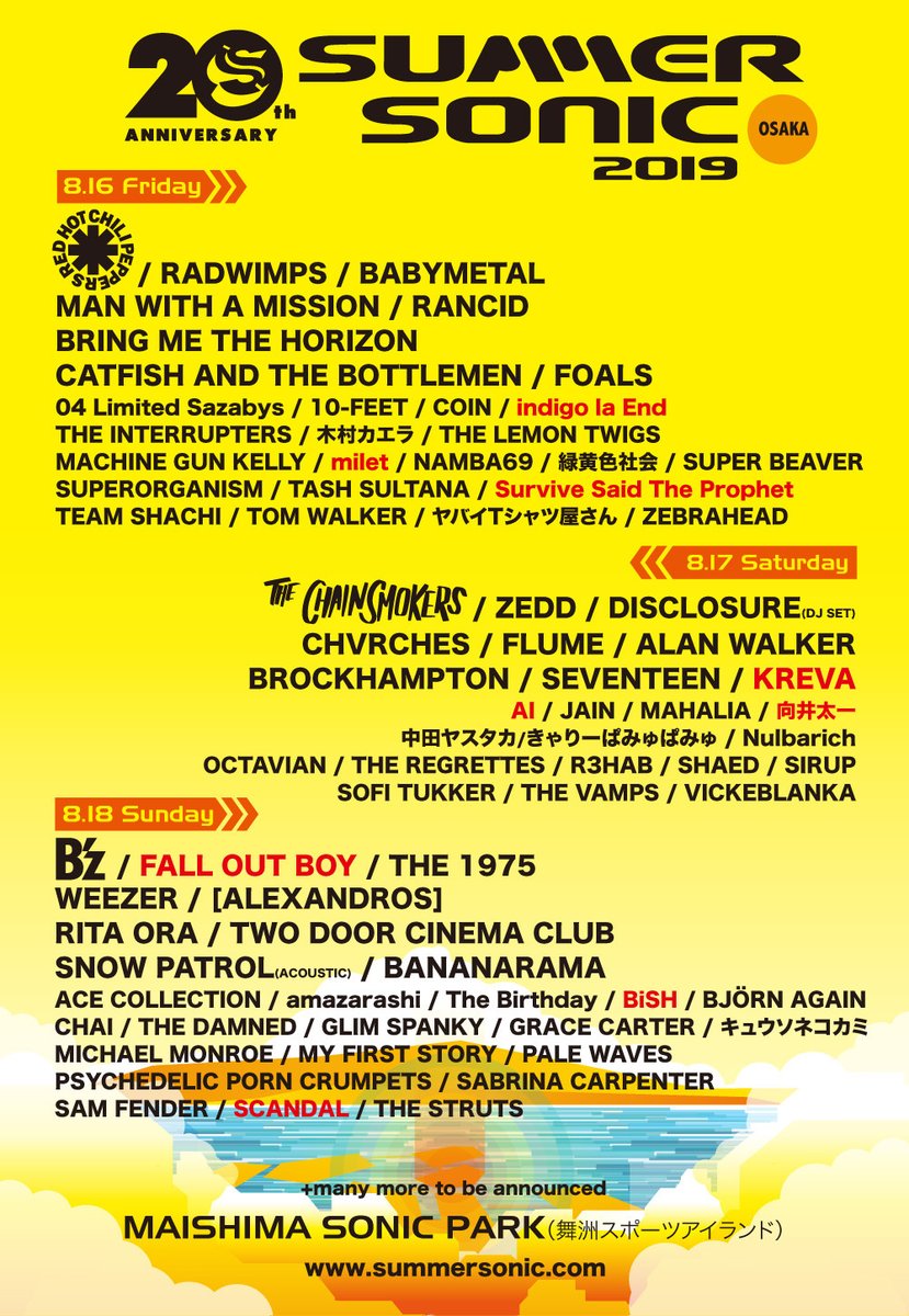FALL OUT BOY、マキシマム ザ ホルモン、ENDRECHERI、Suchmos、KREVA、AI、BiSH、SCANDAL、ALEC BENJAMIN、CHERYL LYNN 等々合わせて30組💁