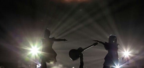 続けてアコースティックギターをステージ上に配置するという演出で披露した新曲(タイトル未定)では、SU-METALと2人でギターを囲むような舞いを見せ、SU-METALは美しいハイトーンを響かせる。2人のパフォーマンスに合わせて観客に配布された“三種の神器”のうちの1つであるアームバンドに内蔵されたLEDライトが白い光を放ち、フロア全体を輝かせた。