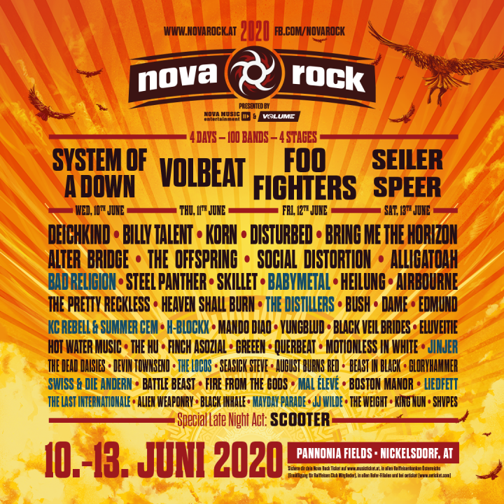 2019.12.162020年6月10日(水)〜 13日(土)に開催されるオーストリア「Nova Rock Festival」に出演することが決定しました。