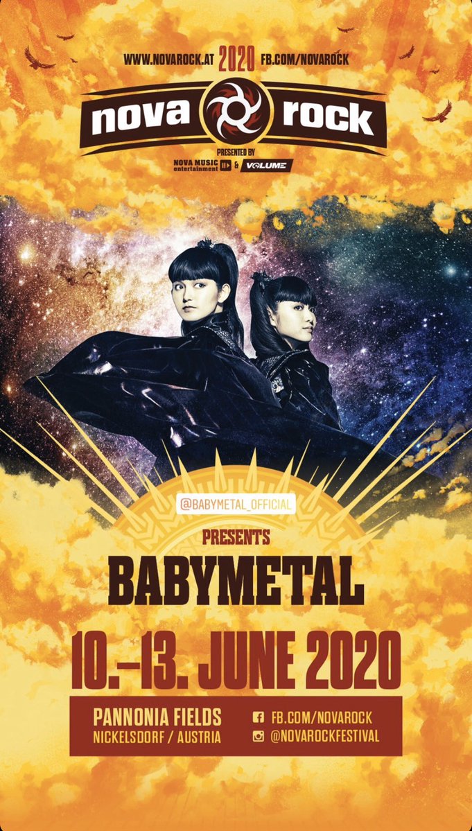 2019.12.162020年6月10日(水)〜 13日(土)に開催されるオーストリア「Nova Rock Festival」に出演することが決定しました。