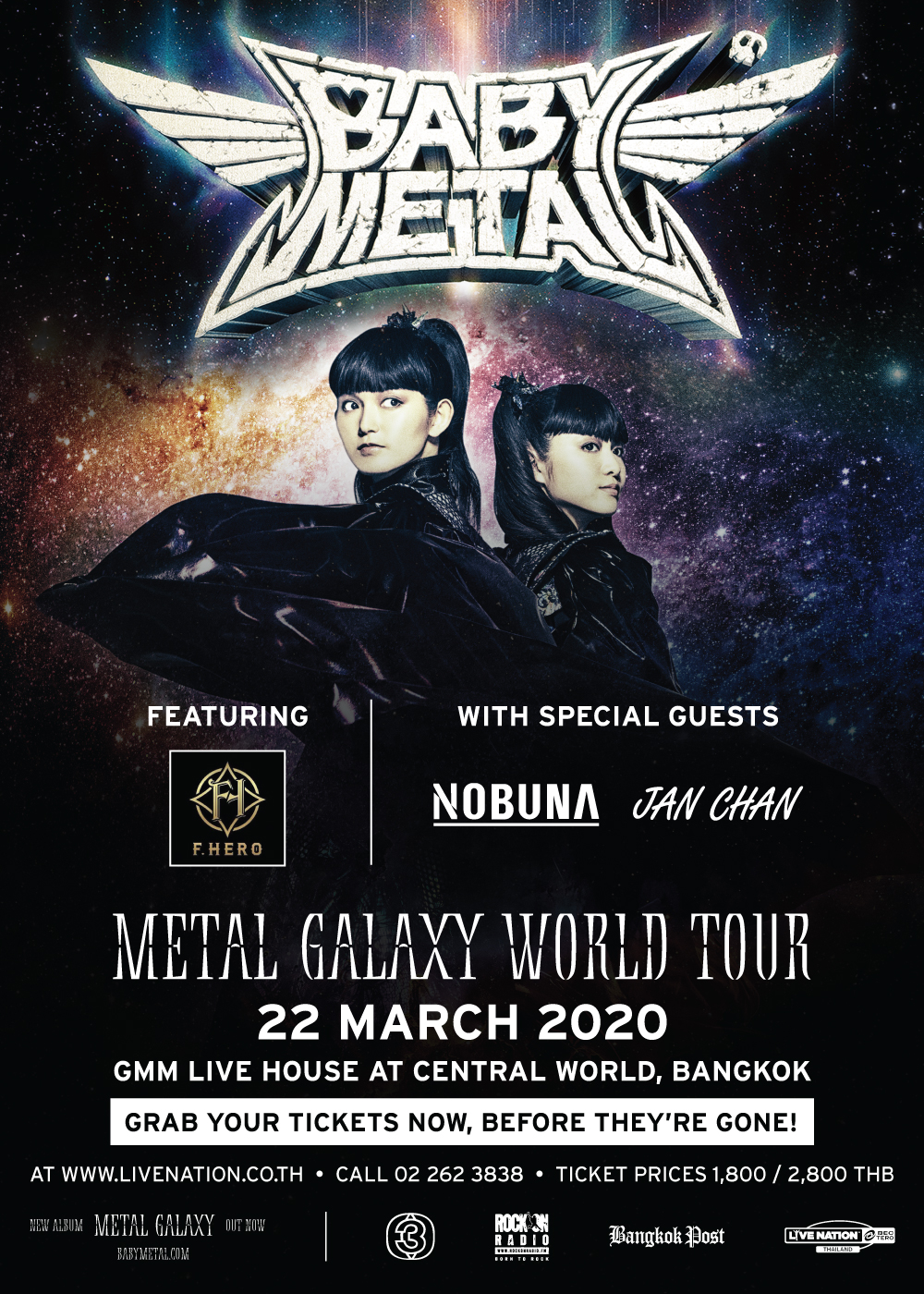 The PA PA YA!! rapper F.HERO will perform as a special guest at “METAL GALAXY WORLD TOUR in Bangkok” with opening acts Jan Chan and Nobuna on Mar 22 at GMM Live House, CentralWorld.