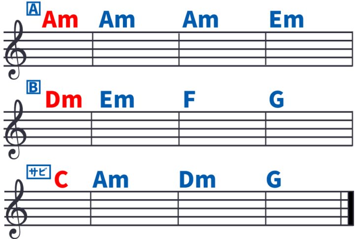 なるほどずっと同じコード進行で色んな楽器や歌のメロディが乗るのかー