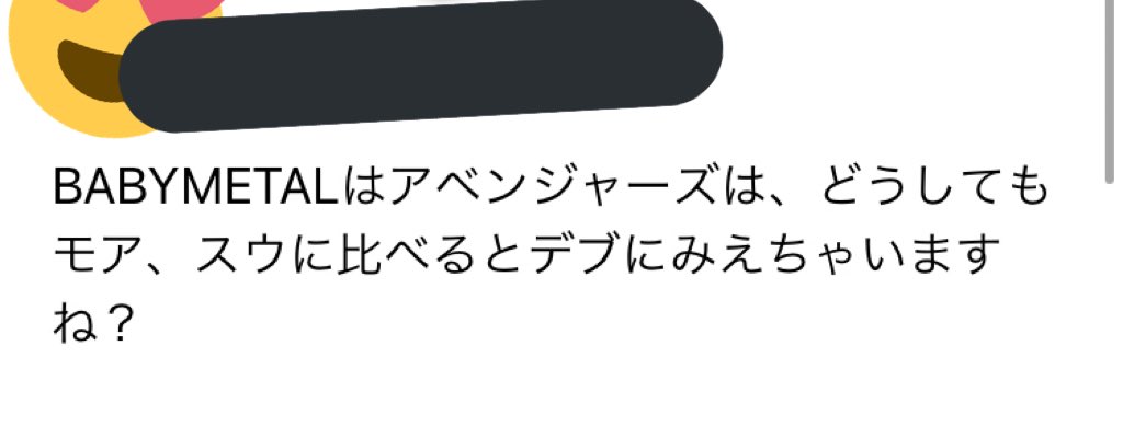 Yahooの知恵袋見てたらなんか他のグループとベビメタ比べる質問が多くてまぁそれは個人の勝手なんだけどメイトさん?とかベビメタを上に上げたい人が↓のような他のグループを下に見てるコメントとかあって少し気になりました💦