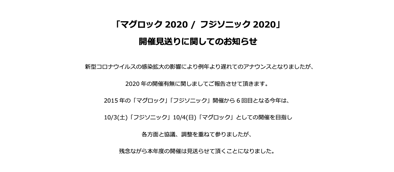 フジソニック2020・マグロック2020本年の開催は見送ることになりました。