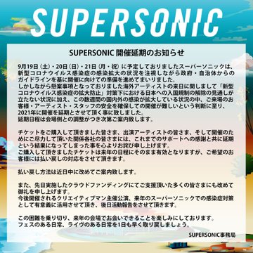 SUPERSONIC 開催延期のお知らせ|SUPERSONIC 2020