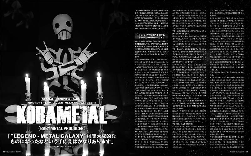 BABYMETAL最新ライヴ作品『LEGEND – METAL GALAXY』発売記念特集をヤング・ギター2020年11月号に掲載。PART-1はプロデューサーのKOBAMETALに、PART-2はドラゴンフォース時代にコラボを果たしたフレデリク・ルクレールにそれぞれ独占取材!