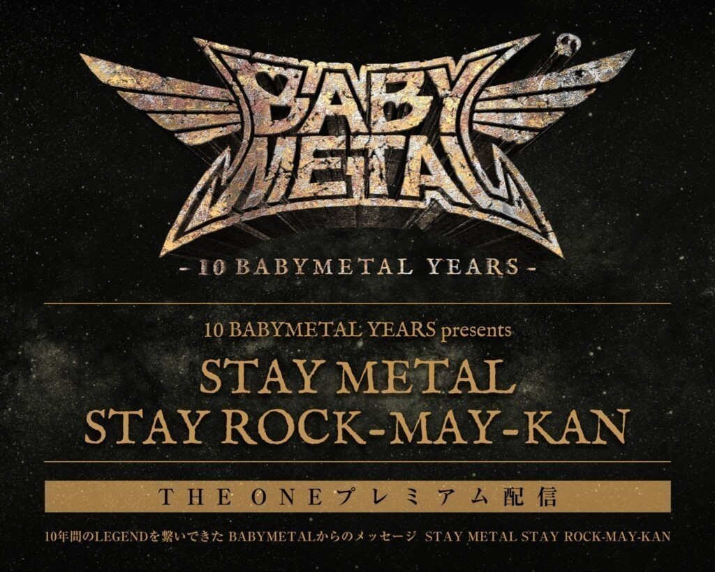 今年結成10周年を迎えたBABYMETALが、12月12日(土) 21時からBABYMETALメンバープロジェクト「THE ONE」登録者向けに限定配信する『STAY METAL STAY ROCK-MAY-KAN』のチケット販売が特設ページにて開始された。