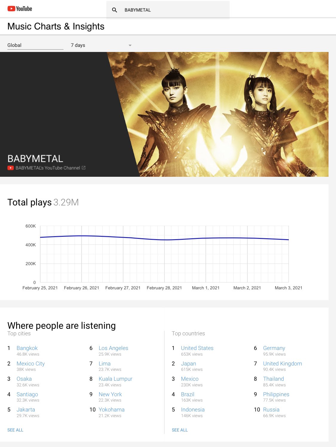Past 7 days they had more streams from the US than they did from Japan on youtube at least.#BABYMETAL pic.twitter.com/SQQmuVJMzR