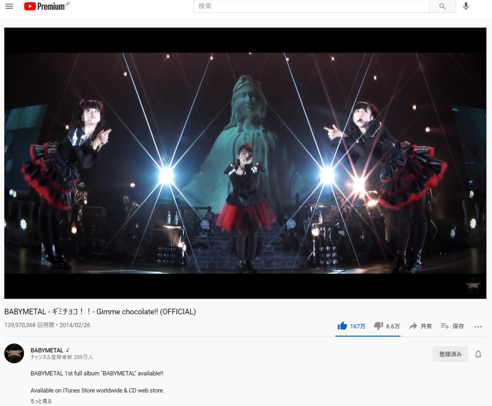 BABYMETAL – ギミチョコyoutube再生数139,921,144回、コメント数138,289。本日の再生数71,965回、コメント数38。#BABYMETAL