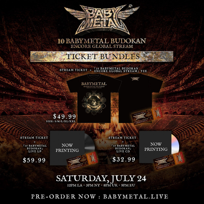 http://babymetal.live特別限定グッズ付きのバンドルオプションやLIVE ALBUM「10 BABYMETAL BUDOKAN」(海外盤)のプレオーダーもスタート!!