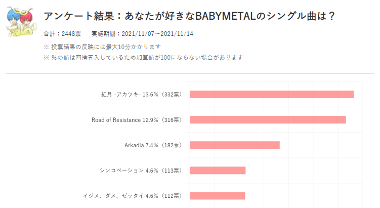 【BABYMETAL】あなたが一番好きなシングル曲は?【2021年版アンケート実施中】https://t.co/dbwq5Wwwn5 #ねとらぼ調査隊 #BABYMETAL #BABYMETALのシングル曲