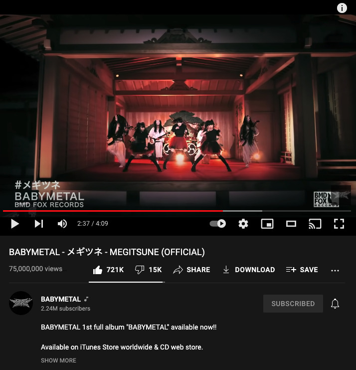 BABYMETALミュージックビデオ統計の更新