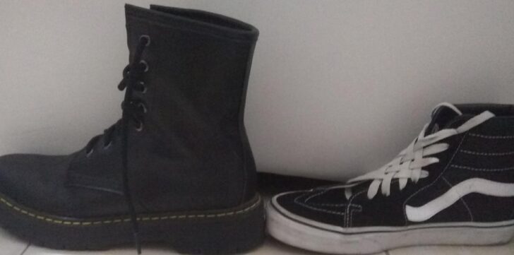 会場や気温にもよりますが、一番気になる靴を履いていくことをお勧めします。でも、もし座ったり、大きな会場だったら、高さとバンドとの関係を考えて、ドクターマーチンを持って行った方がいいと思います。