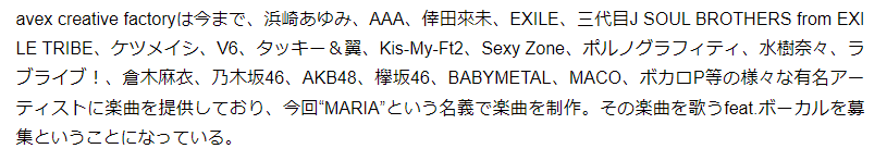 ここで、avex creative factoryというところが今まで楽曲提供したアーティストの中にBABYMETALが含まれてるのだが、