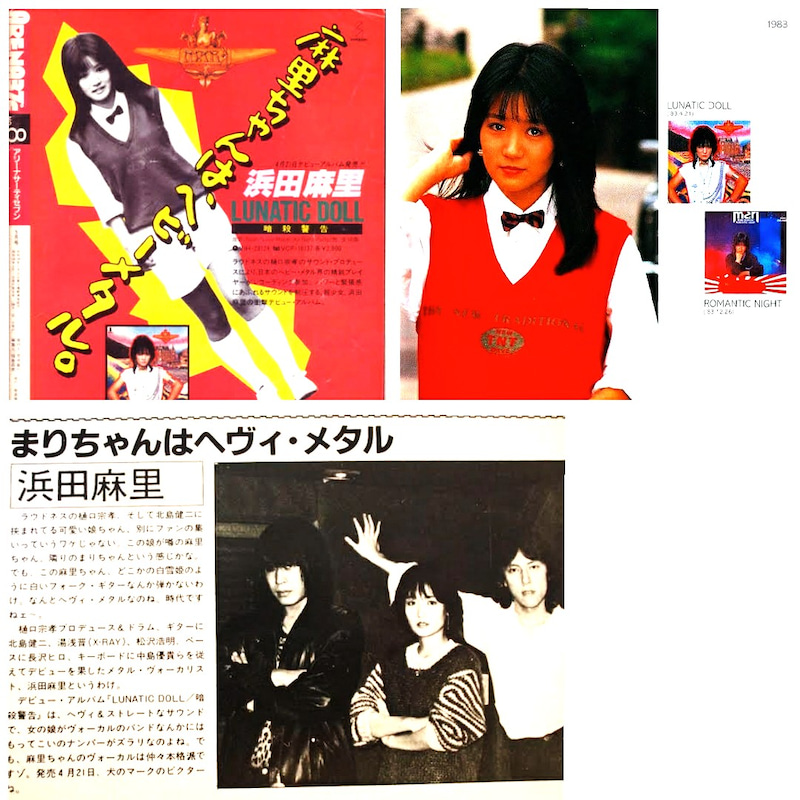 浜田麻里といえばデビュー時はまだ若干21歳の大学生。デビューアルバムには糸井重里により「麻里ちゃんはヘビーメタル」というキャッチコピーがつけられたそうです。今でも50代後半という年齢を感じさせない美貌を保っている彼女ですが、デビュー当初の写真を見ると、やはりアイドル的ルックスで、そんな彼女がヘビーメタルというジャンルを歌うというギャップが大きな売りだったのでしょう。そういう意味では最近話題のBABYMETALと同じような売り方の構図のような印象を受けます。