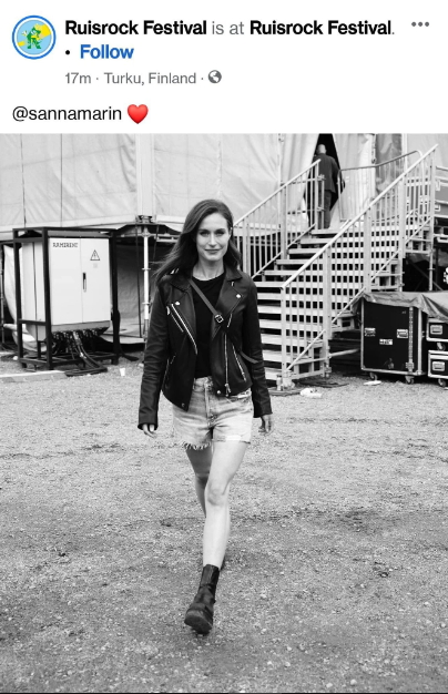 Finland’s Prime Minister Sanna Marin was spotted attending the Ruisrock festival tonight. pic.twitter.com/eGuxezinXR