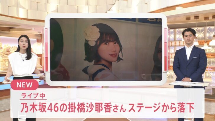 今夜、明治神宮野球場で行われていた人気アイドルグループ乃木坂46のライブで、メンバーの掛橋沙耶香さんがステージから落下し、けがをしました。