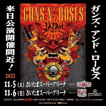 ガンズ・アンド・ローゼズ(Guns N’ Roses)の来日公演がスタート。初日11月5日さいたまスーパーアリーナ公演のライヴ映像の一部を、メンバーのダフ・マッケイガン(Duff McKagan)がSNSで公開しています。