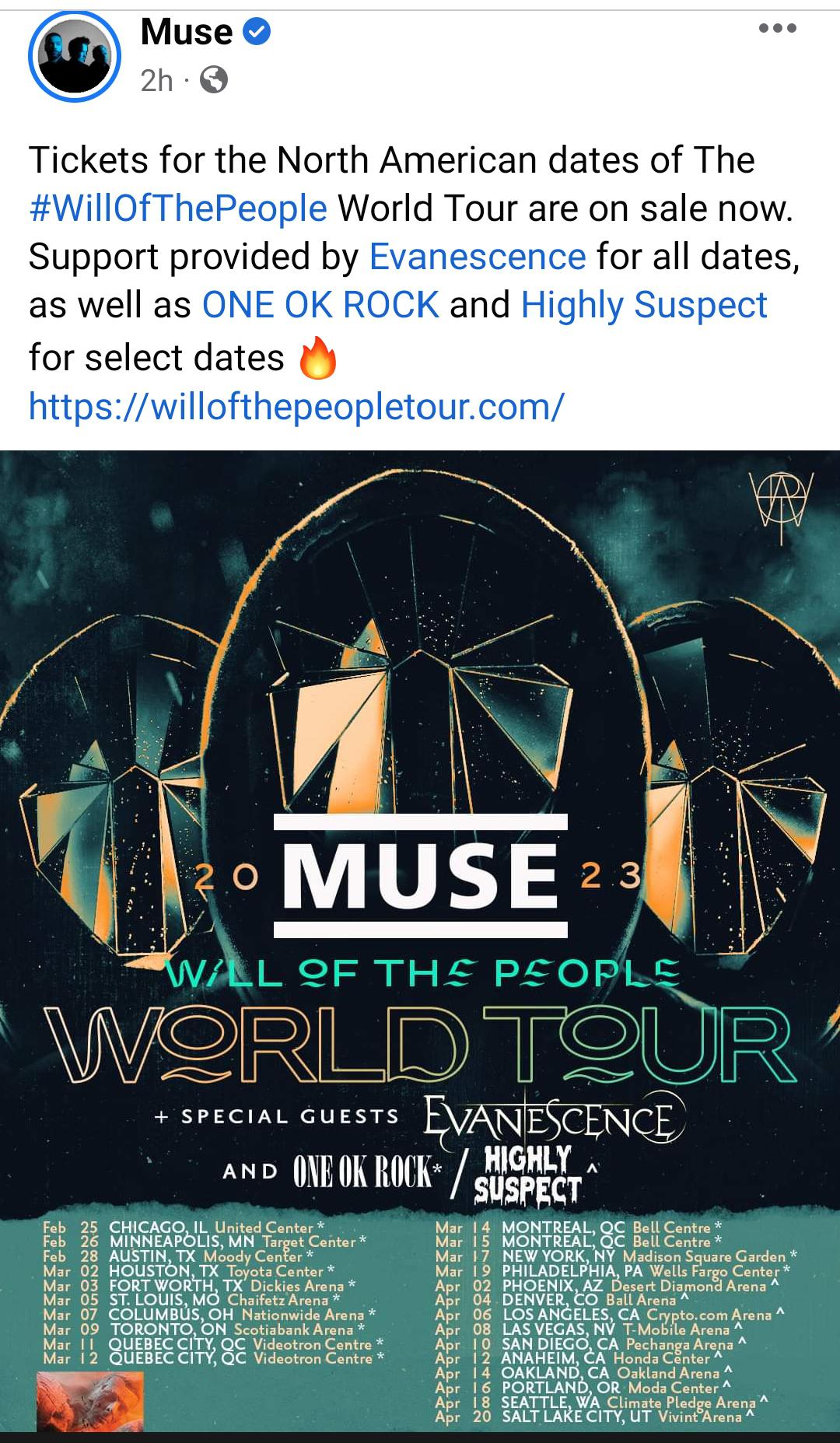 これは彼らのFacebookアカウントに掲載されているものです。Evanescenceの下にOne Ok RockとHighly Suspectが追加され、各会場でどちらが登場するかを読み解くための記号が書かれています。
