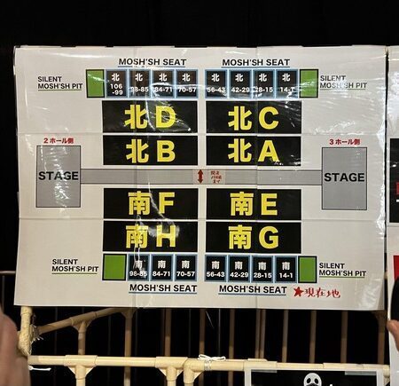本公演は客席内に「SILENT MOSH’SH PIT(オールスタンディング)」を設置致します。体力に自信の無い方、小さなお子様連れ、などの方を対象としています。「SILENT MOSH’SH PIT」では声を出しての声援や会話、他のお客様にご迷惑となる行為はお控えください。