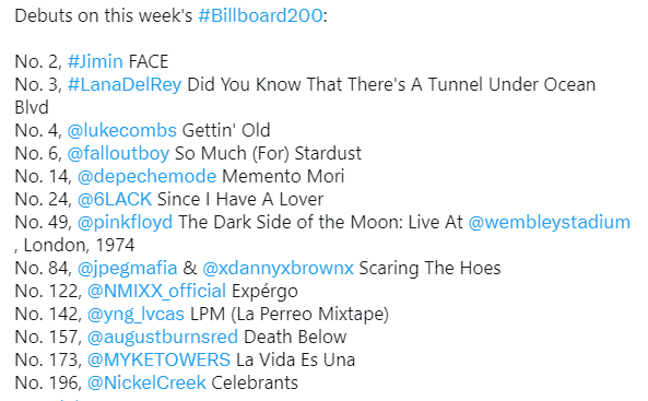 Debuts on this week’s #Billboard200: