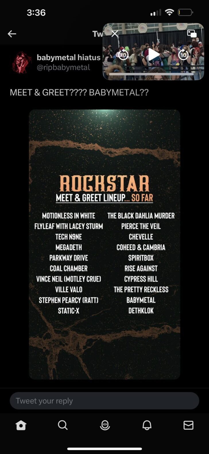 彼らのInstagramのストーリーで変更され、削除されました。というのも、Blue RidgeのRockstarパスは現在2,700ドル、元々は1,450ドルから1,750ドルで流通市場に出回っており、BABYMETALがフェスに参加すると発表されるずっと前に売り切れていたのです。
