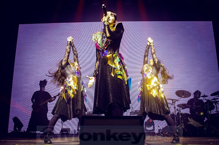 BABYMETALは間違いなく一味違うメタル・コンサートを繰り広げる。神バンドと呼ばれる楽器隊は、バックで覆面をかぶって立ち、ピンポイントでシュレッダーにかける。旧来のファンはこれを “不必要なホッピング “として否定するだろうが、そうでない人はまさにこの理由でこのグループを好きになるのだろう。BABYMETALは異色で、個性的で、分厚いリフとドライヴ感のあるドラミングを、ご機嫌なジャパニーズ・ポップスと融合させている。純粋なクロスオーバー・ミュージックだ。「ギミ・チョコ!」、「パパヤ!」、「モノクローム」、「メギツネ」のいずれの曲名であっても、このグループには素晴らしいキャッチーなフックがたくさんある。どういうわけか、言葉の壁さえほとんど気にならない。Su-Metalの澄んだソプラノ・ボイスも重要な武器であり、リード・シンガーのヴォーカルはライブでもまったく説得力がある。