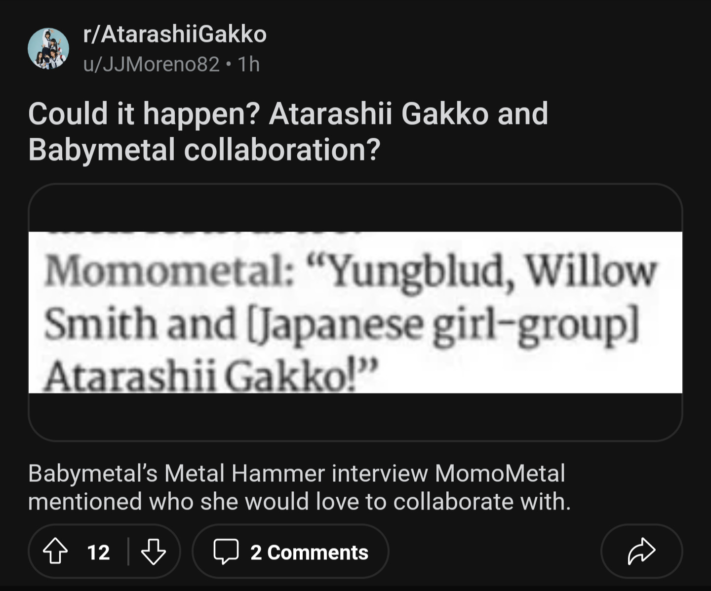 引用元:https://www.reddit.com/r/BABYMETAL/comments/1ahqcx7/momo_mentions_atarashii_gakko_for_a_potential/