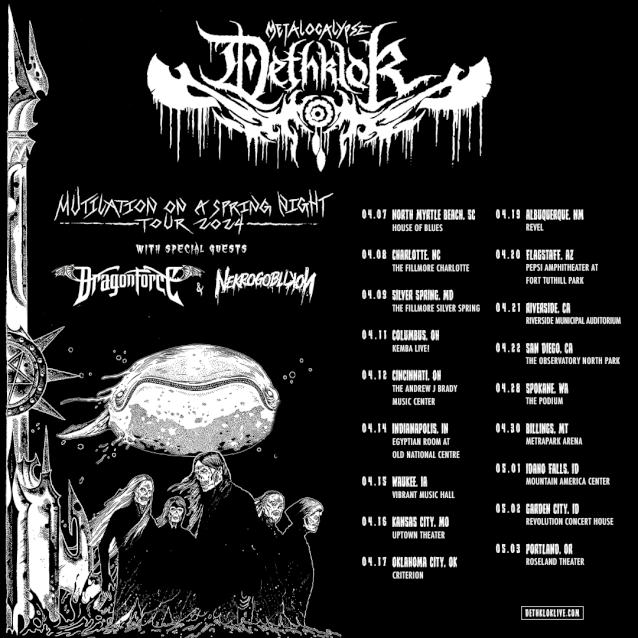 DETHKLOKが春に “Mutilation On A Spring Night “ツアーに出る。ライブ・ネイションがプロデュースするこのツアーは4月7日から5月3日まで行われ、DRAGONFORCEとNEKROGOBLIKONがサポートする。